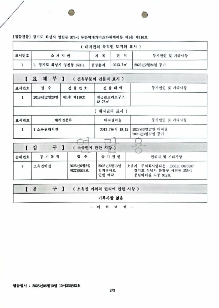 2025년 7월 9일 투자자 채권보존 근저당권 설정(공동)