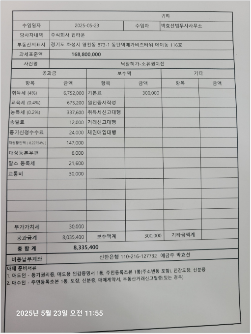 2025년 5월 23일 소유권이전비용 (법무사)